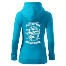 Dámska mikina MALFINI Viva 409 je navrhnutá pre ženy, ktoré ocenia spojenie praktickosti a moderného dizajnu. Polopriliehavý strih tvarovaný bočnými dielmi zvýrazňuje ženskú siluetu, zatiaľ čo celoprepínací strieborný zips a vyšší stojačik z rebrového úpletu dodávajú elegantný vzhľad. Mikina je vybavená dvoma našitými vreckami typu „klokanka“ a vďaka rýchloschnúcemu strečovému materiálu poskytuje pohodlie a zachováva tvar. Počesaná vnútorná strana zabezpečuje teplo a príjemný pocit pri nosení.