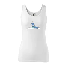 Ramená spevnené všitým prúžkom. Tričko siaha do hĺbky bokov. Silikónová úprava zabezpečuje mäkký a splývavý omak.