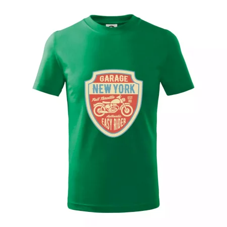 Detské tričko strednej gramáže s bočnými švami. Úzky priekrčník s prídavkom 5% elastanu. Vnútorná časť zadného priekrčníka začistená tkanou páskou. Spevnený ramenný šev.