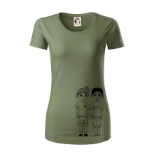Dámske tričko s ľahko priliehavým strihom, ktorý pôsobí elegantne a skvele padne. Tento typ trička má kratšie rukávy a hlbší výstrih zakončený jemným lemovaním.
