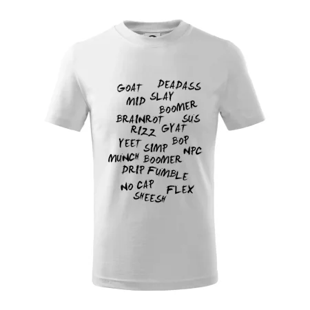 Detské tričko strednej gramáže s bočnými švami. Úzky priekrčník s prídavkom 5% elastanu. Vnútorná časť zadného priekrčníka začistená tkanou páskou. Spevnený ramenný šev.