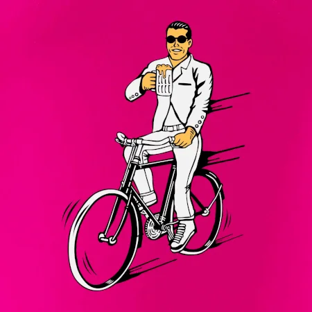 Gentleman na bicykli s pivom