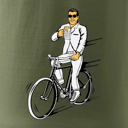 Gentleman na bicykli s pivom