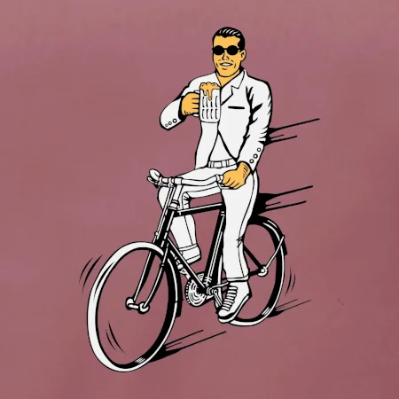 Gentleman na bicykli s pivom