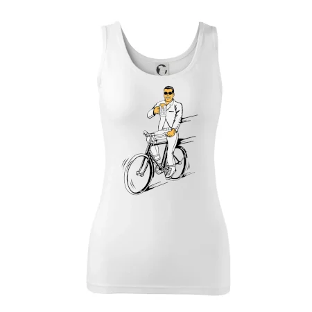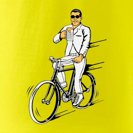 Gentleman na bicykli s pivom