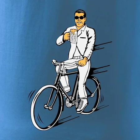 Gentleman na bicykli s pivom