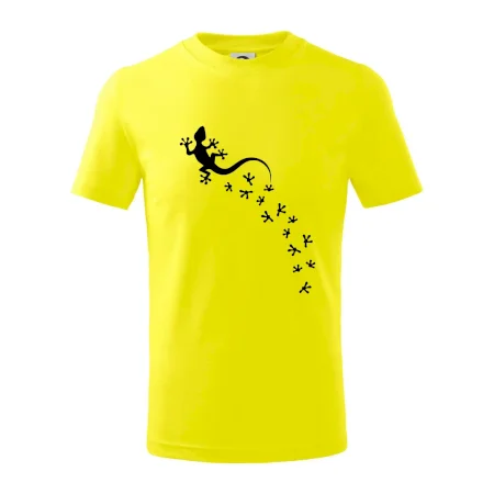 Detské tričko strednej gramáže s bočnými švami. Úzky priekrčník s prídavkom 5% elastanu. Vnútorná časť zadného priekrčníka začistená tkanou páskou. Spevnený ramenný šev.