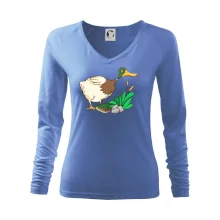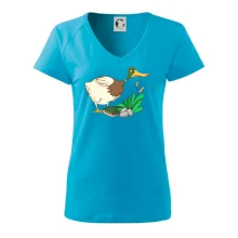 Dámske tričko s ľahko priliehavým strihom, ktorý pôsobí elegantne a skvele padne. Tento typ trička má kratšie rukávy a hlbší výstrih zakončený jemným lemovaním.