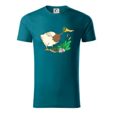 Pánske tričko s krátkym rukávom vyššej gramáže. Módne, priliehavý strih s bočnými švami. Úzky lem priekrčníka z rebrového úpletu s prídavkom 5% elastanu. Vnútorná časť zadného priekrčníku začistená páskou. Spevnený ramenný šev.
