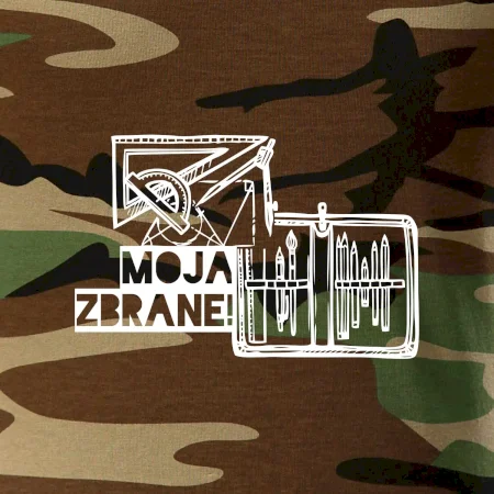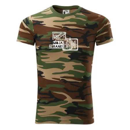 Tričko strednej gramáže vo farbách camouflage. Strih s bočnými švami. Lem priekrčníku z rebrového úpletu s prídavkom 5% elastanu. Vnútorná časť zadného priekrčníka začistená páskou vo farbe camouflage.