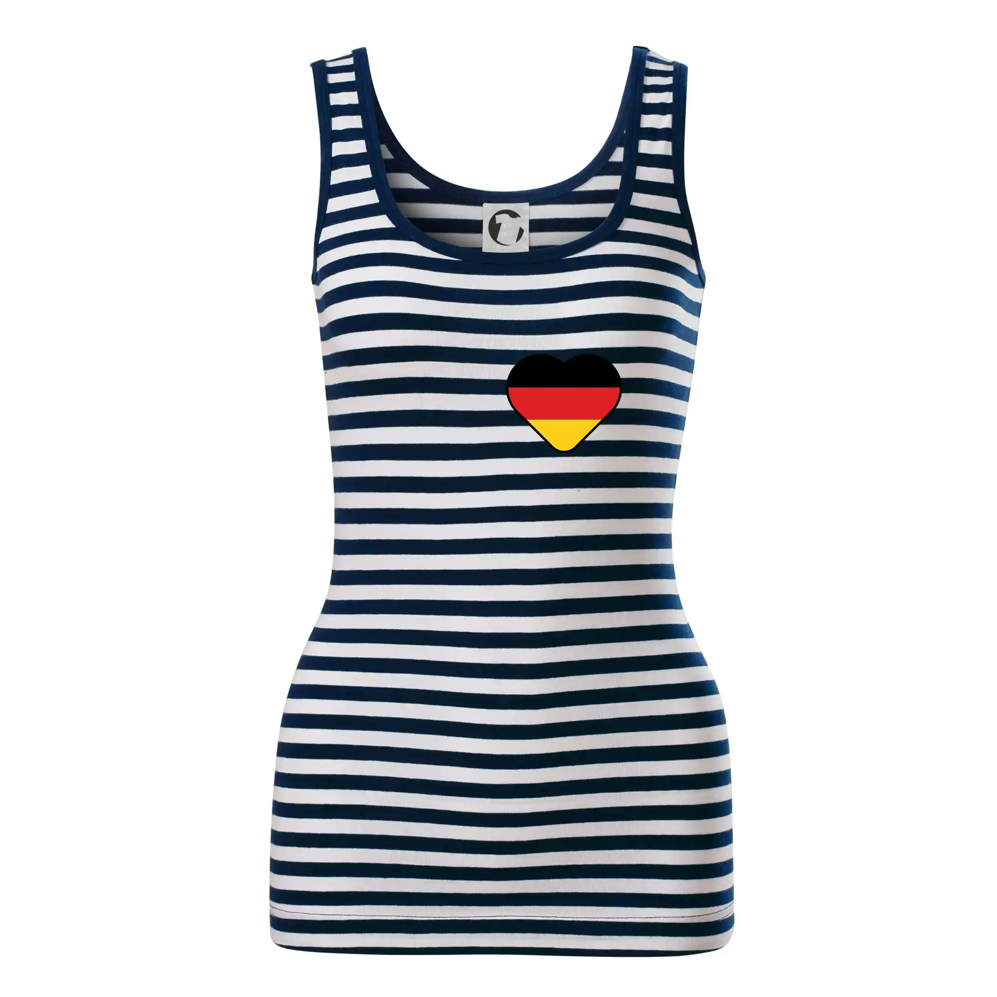 Dámske tielko MALFINI Sailor Top 806 prináša ikonický námornícky vzhľad s bielo-modrými pruhmi, ideálne na letné dni, výlety alebo ležérne outfity.