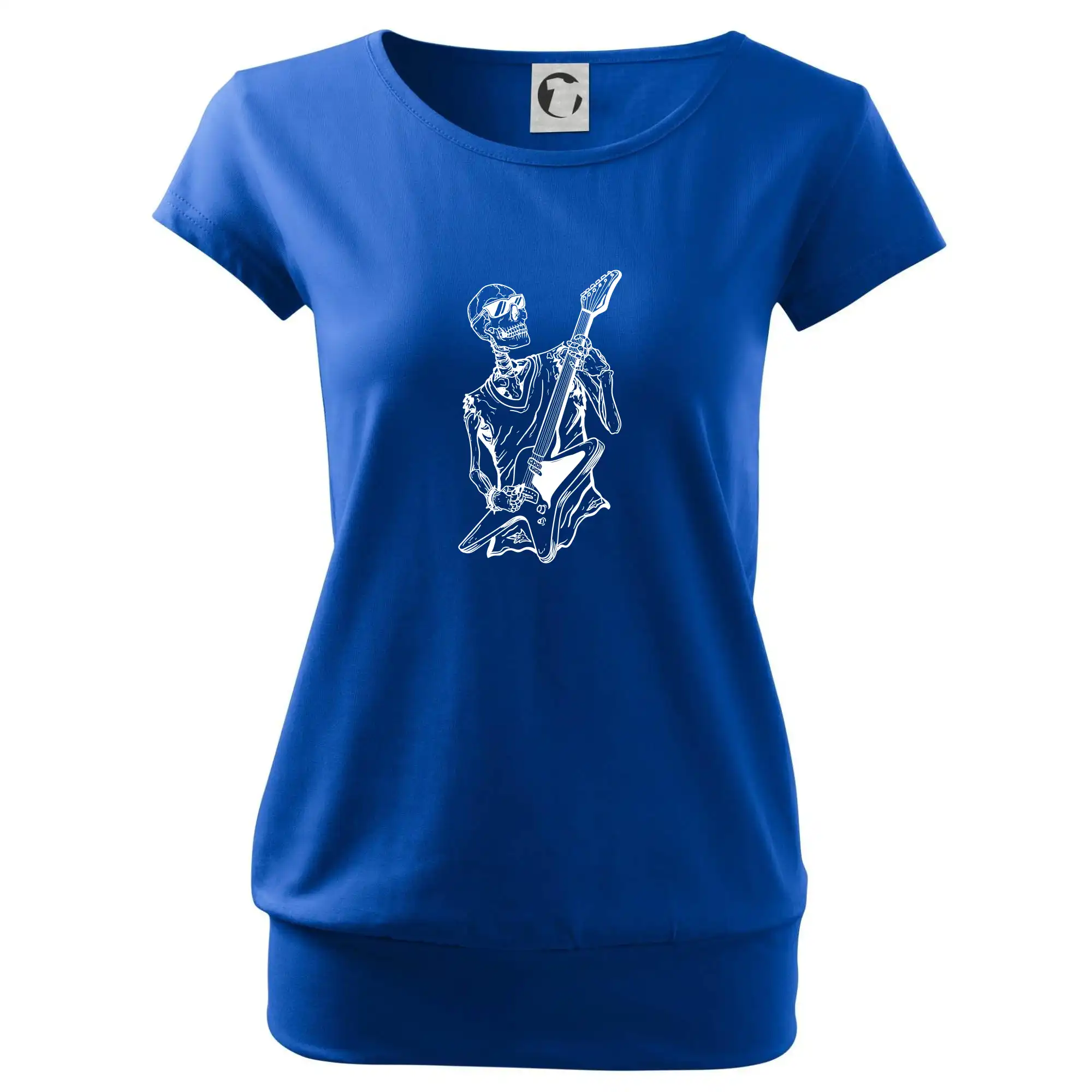 Trendové dámske tričko s veľmi krátkym rukávom, voľnejšieho strihu, v dolnom kraji všité do širokého lemu. Okrúhly priekrčník s úzkym lemom zo zhodného materiálu.