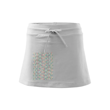 Dámska kraťasová sukňa MALFINI Two in One 604 je perfektnou kombináciou sukne a šortiek, ideálna na šport, voľný čas alebo ležérne nosenie. Vďaka prídavku elastanu si sukňa zachováva tvar a ponúka pohodlie pri pohybe. Krátky strih do tvaru „A“ a široký elastický pás so sťahovacou šnúrkou zabezpečujú voľnosť a prispôsobenie.