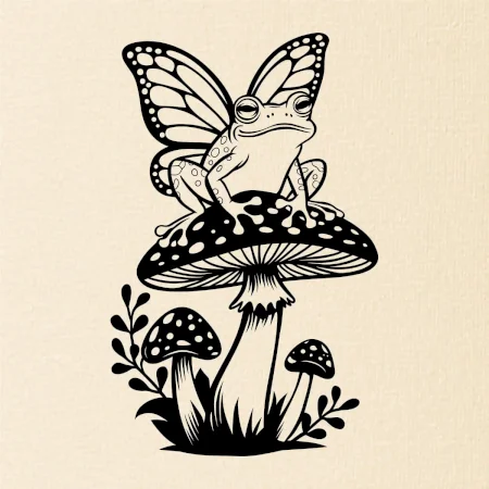 Goblincore čierna huba so žabou