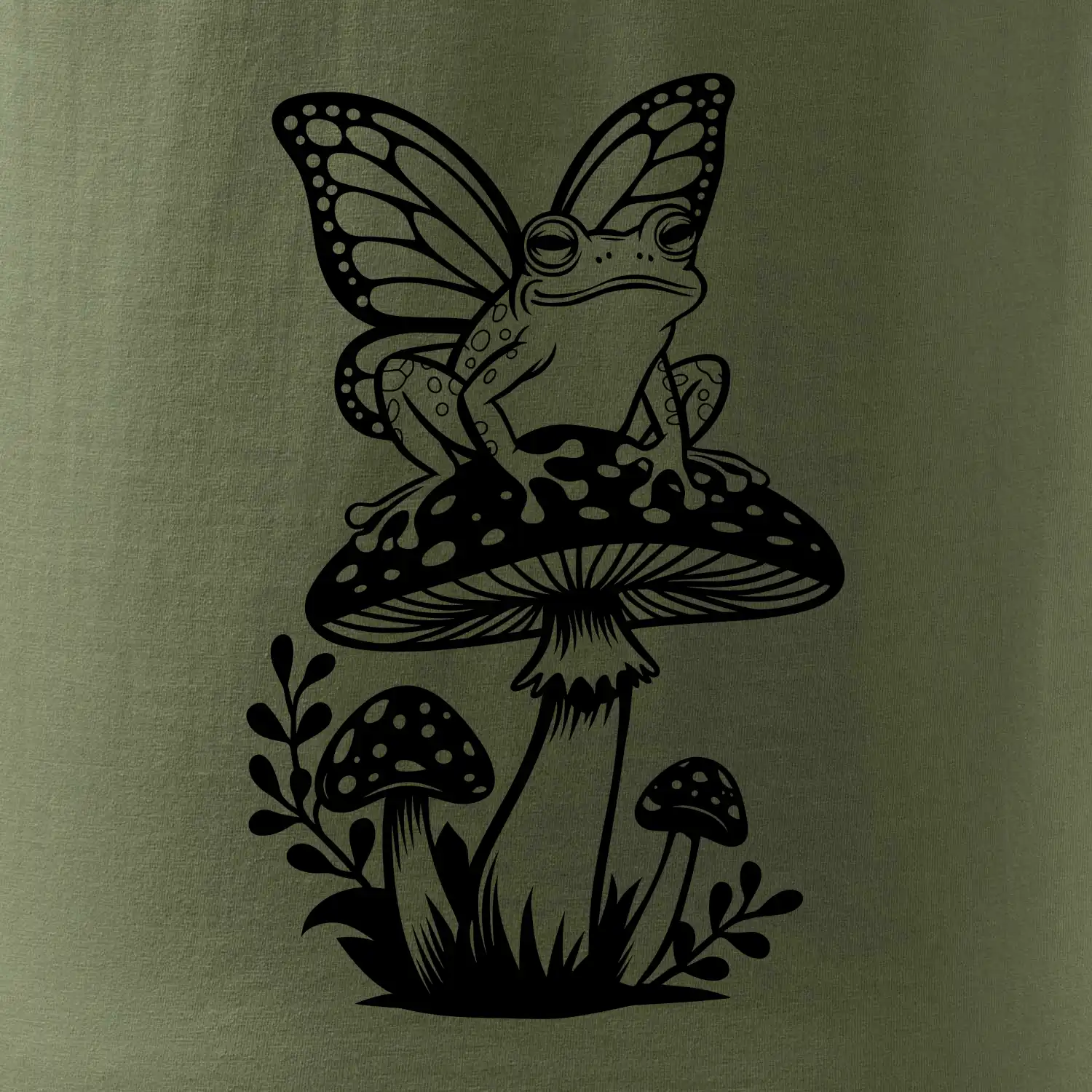 Goblincore čierna huba so žabou