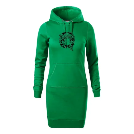 Dámske mikinové šaty MALFINI Snap 419 sú ideálnou voľbou pre ženy, ktoré hľadajú pohodlný a štýlový kúsok na voľný čas alebo každodenné nosenie. Ľahko vypasovaný strih s bočnými švami podčiarkuje ženskú siluetu, zatiaľ čo kapucňa s podšívkou a sťahovacou šnúrkou dodáva ležérny vzhľad. Šaty majú dĺžku nad kolená a sú vybavené našitým vreckom v štýle „klokanky“. Materiál je mäkký a príjemný na dotyk grâce à smesi bavlny a polyesteru s nepočesanou vnútornou stranou.