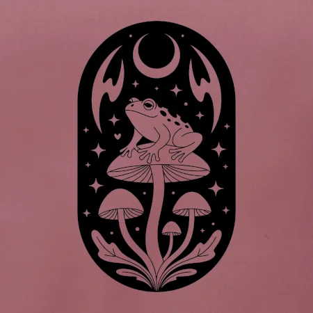 Goblincore čiernobiela oválna žaba