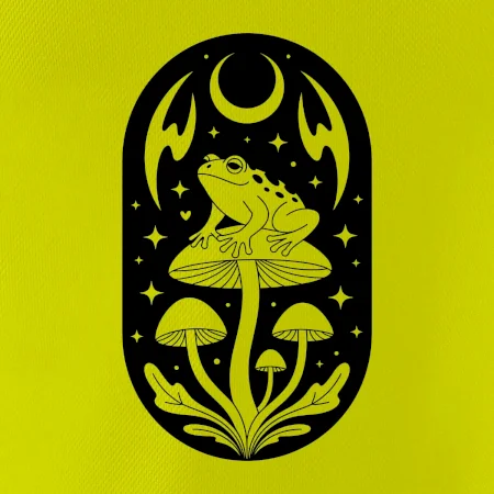 Goblincore čiernobiela oválna žaba