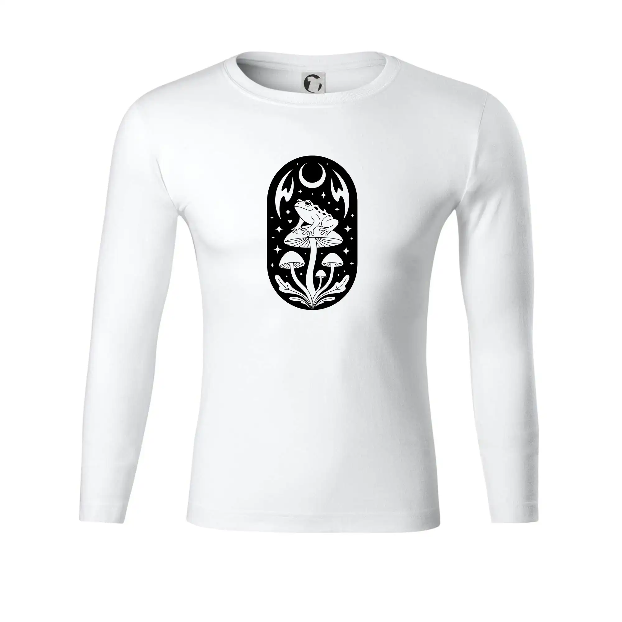Goblincore čiernobiela oválna žaba