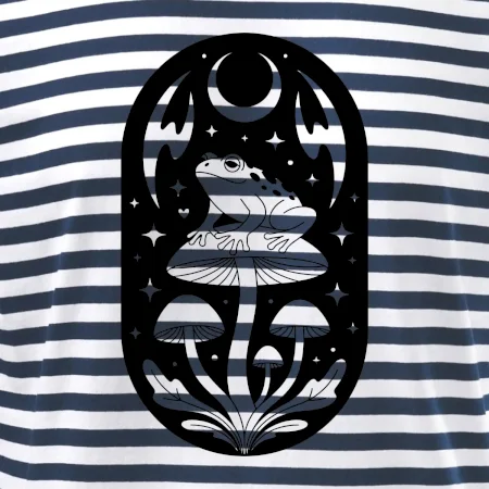 Goblincore čiernobiela oválna žaba