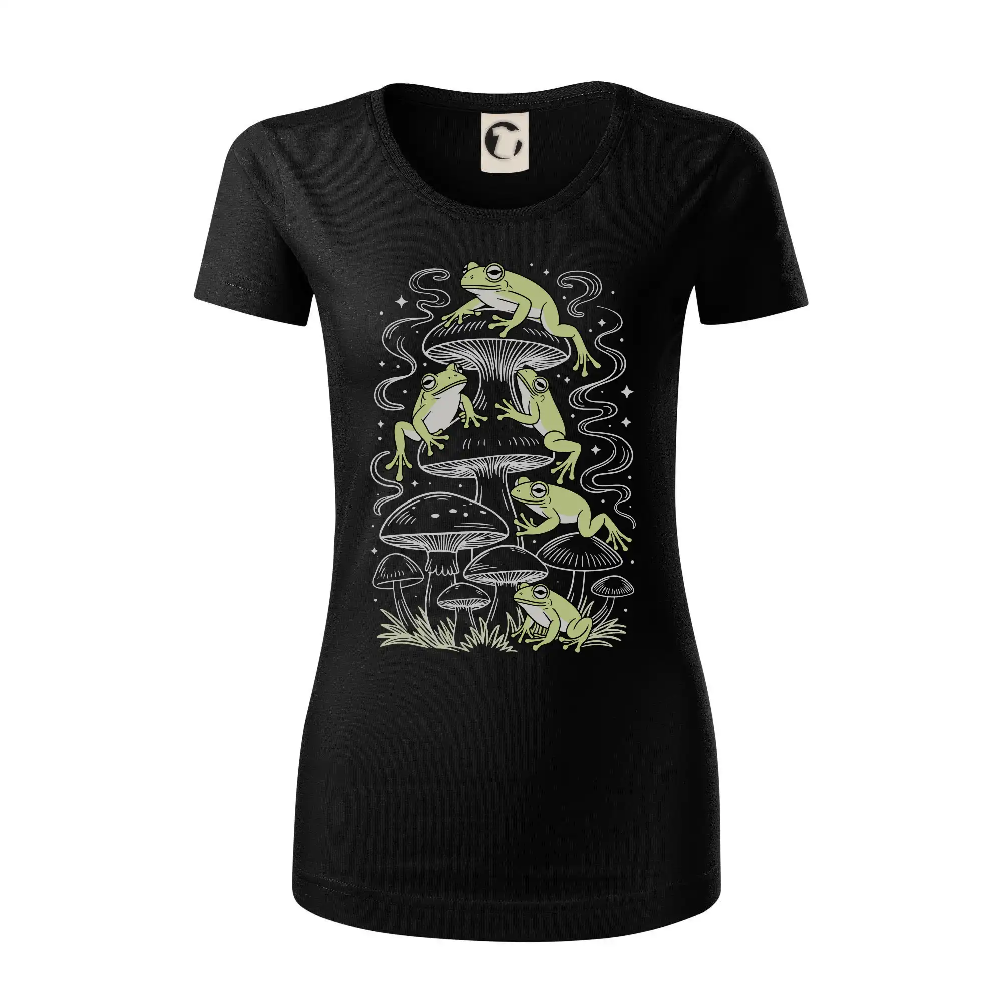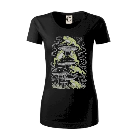 Goblincore frogs and various mushrooms