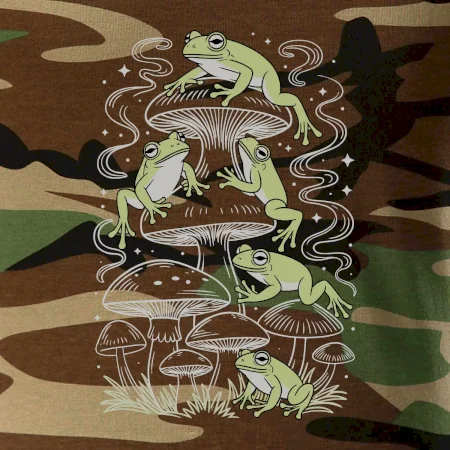 Goblincore frogs and various mushrooms