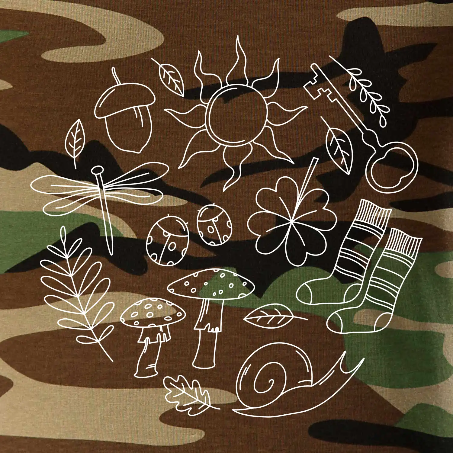 Tričko strednej gramáže vo farbách camouflage. Strih s bočnými švami. Lem priekrčníku z rebrového úpletu s prídavkom 5% elastanu. Vnútorná časť zadného priekrčníka začistená páskou vo farbe camouflage.
