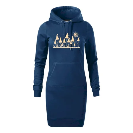 Dámske mikinové šaty MALFINI Snap 419 sú ideálnou voľbou pre ženy, ktoré hľadajú pohodlný a štýlový kúsok na voľný čas alebo každodenné nosenie. Ľahko vypasovaný strih s bočnými švami podčiarkuje ženskú siluetu, zatiaľ čo kapucňa s podšívkou a sťahovacou šnúrkou dodáva ležérny vzhľad. Šaty majú dĺžku nad kolená a sú vybavené našitým vreckom v štýle „klokanky“. Materiál je mäkký a príjemný na dotyk grâce à smesi bavlny a polyesteru s nepočesanou vnútornou stranou.
