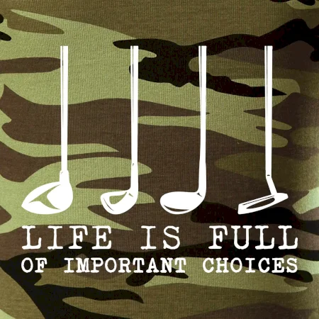Originální dárek je tričko pro golfistu, který ví, že život je plný důležitých rozhodnutí :-)