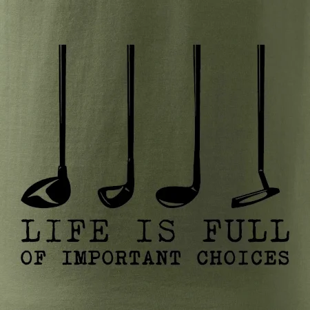Originální dárek je tričko pro golfistu, který ví, že život je plný důležitých rozhodnutí :-)