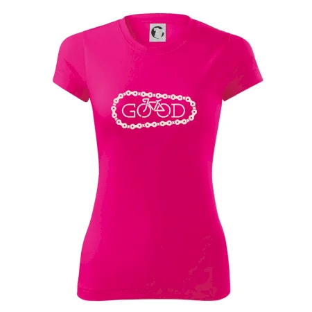 Tričko pre cyklistu, na ktorom je reťaz a bicykel, ktoré tvoria nápis Boh by mal potešiť všetkých cyklistov, ktorí jazdia srdcom. Cyklo tričko by mal mať každý správny športovec cyklista. Cyklistické tričko ukáže, ako máte radi šport, najmä bicykel.