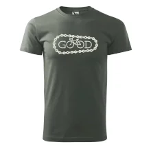 Tričko pre cyklistu, na ktorom je reťaz a bicykel, ktoré tvoria nápis Boh by mal potešiť všetkých cyklistov, ktorí jazdia srdcom. Cyklo tričko by mal mať každý správny športovec cyklista. Cyklistické tričko ukáže, ako máte radi šport, najmä bicykel.