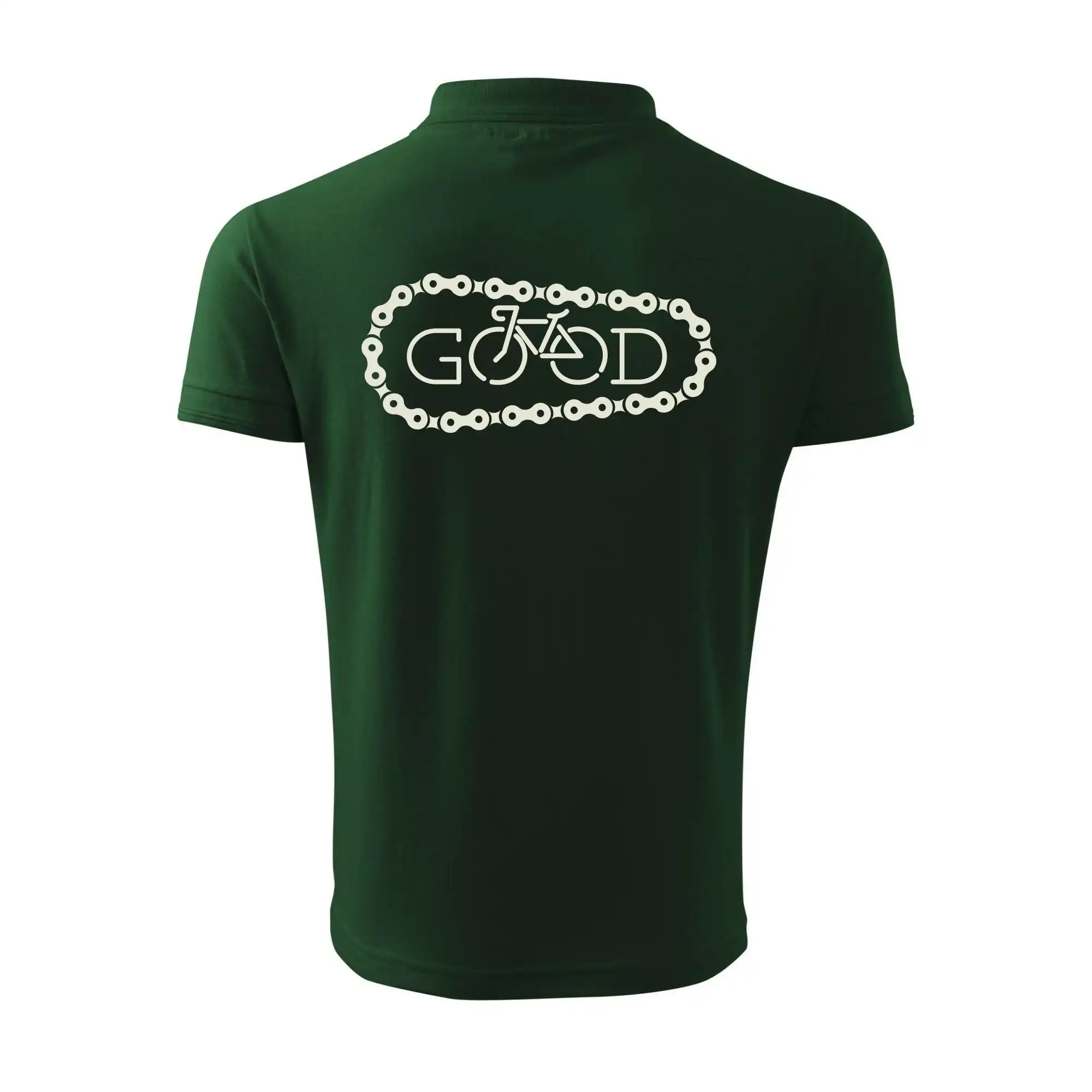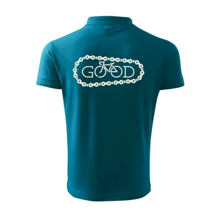Tričko pre cyklistu, na ktorom je reťaz a bicykel, ktoré tvoria nápis Boh by mal potešiť všetkých cyklistov, ktorí jazdia srdcom. Cyklo tričko by mal mať každý správny športovec cyklista. Cyklistické tričko ukáže, ako máte radi šport, najmä bicykel.
