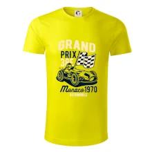 Pánske tričko s krátkym rukávom vyššej gramáže. Módne, priliehavý strih s bočnými švami. Úzky lem priekrčníka z rebrového úpletu s prídavkom 5% elastanu. Vnútorná časť zadného priekrčníku začistená páskou. Spevnený ramenný šev.