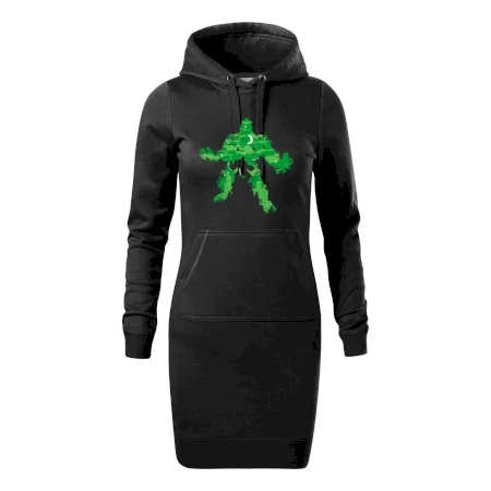 Dámske mikinové šaty MALFINI Snap 419 sú ideálnou voľbou pre ženy, ktoré hľadajú pohodlný a štýlový kúsok na voľný čas alebo každodenné nosenie. Ľahko vypasovaný strih s bočnými švami podčiarkuje ženskú siluetu, zatiaľ čo kapucňa s podšívkou a sťahovacou šnúrkou dodáva ležérny vzhľad. Šaty majú dĺžku nad kolená a sú vybavené našitým vreckom v štýle „klokanky“. Materiál je mäkký a príjemný na dotyk grâce à smesi bavlny a polyesteru s nepočesanou vnútornou stranou.
