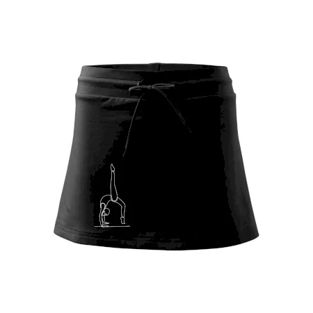 Dámska kraťasová sukňa MALFINI Two in One 604 je perfektnou kombináciou sukne a šortiek, ideálna na šport, voľný čas alebo ležérne nosenie. Vďaka prídavku elastanu si sukňa zachováva tvar a ponúka pohodlie pri pohybe. Krátky strih do tvaru „A“ a široký elastický pás so sťahovacou šnúrkou zabezpečujú voľnosť a prispôsobenie.