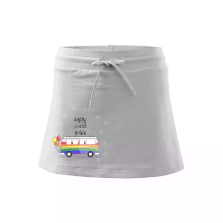 Dámska kraťasová sukňa MALFINI Two in One 604 je perfektnou kombináciou sukne a šortiek, ideálna na šport, voľný čas alebo ležérne nosenie. Vďaka prídavku elastanu si sukňa zachováva tvar a ponúka pohodlie pri pohybe. Krátky strih do tvaru „A“ a široký elastický pás so sťahovacou šnúrkou zabezpečujú voľnosť a prispôsobenie.
