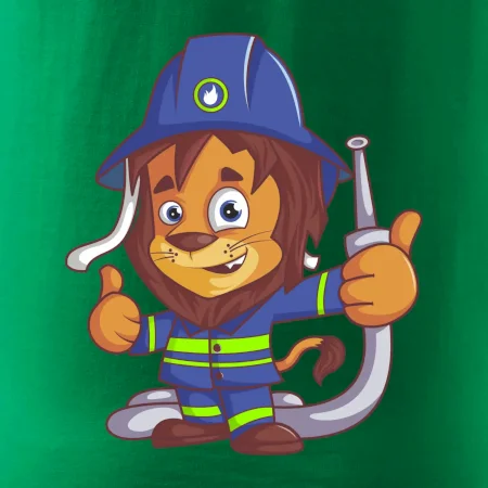 Detské tričko pre hasičov. Pokiaľ si malý hasič, zaobstaraj si u nás hasičské tričko, na ktorom je lev hasič. Darček pre hasičov, ktorí majú radi zvieratá. Hasičský levíček uhasí každý požiar, zvládneš to aj ty?
