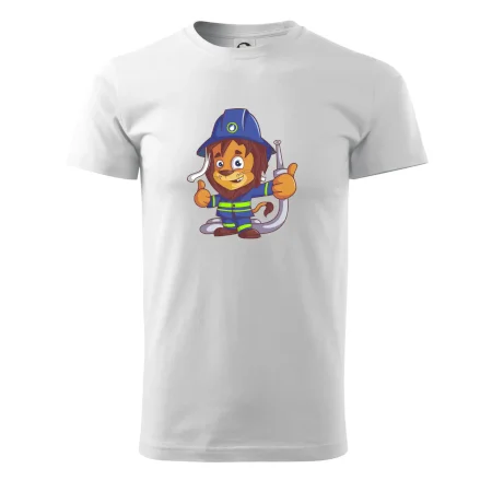 Detské tričko pre hasičov. Pokiaľ si malý hasič, zaobstaraj si u nás hasičské tričko, na ktorom je lev hasič. Darček pre hasičov, ktorí majú radi zvieratá. Hasičský levíček uhasí každý požiar, zvládneš to aj ty?