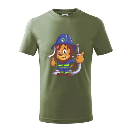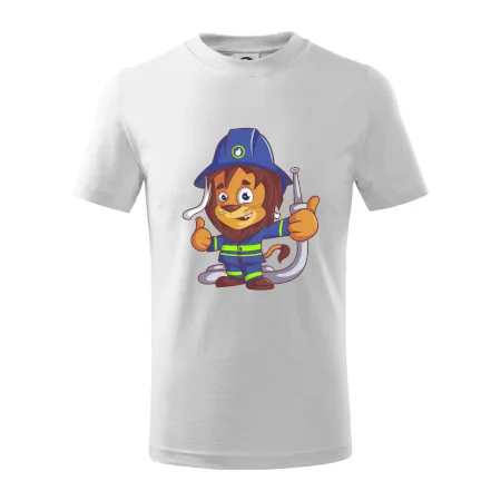 Detské tričko pre hasičov. Pokiaľ si malý hasič, zaobstaraj si u nás hasičské tričko, na ktorom je lev hasič. Darček pre hasičov, ktorí majú radi zvieratá. Hasičský levíček uhasí každý požiar, zvládneš to aj ty?