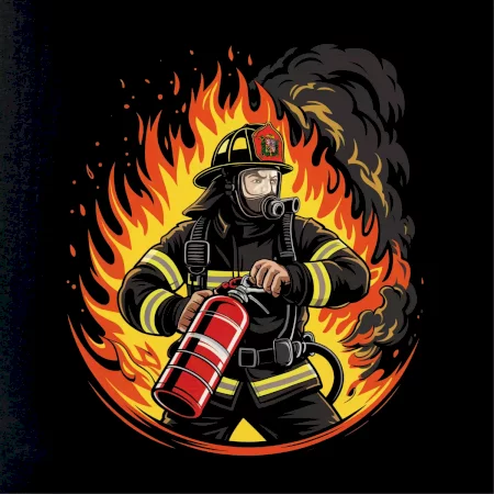 Hasič v ohni s minimaxem