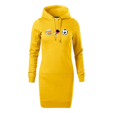 Dámske mikinové šaty MALFINI Snap 419 sú ideálnou voľbou pre ženy, ktoré hľadajú pohodlný a štýlový kúsok na voľný čas alebo každodenné nosenie. Ľahko vypasovaný strih s bočnými švami podčiarkuje ženskú siluetu, zatiaľ čo kapucňa s podšívkou a sťahovacou šnúrkou dodáva ležérny vzhľad. Šaty majú dĺžku nad kolená a sú vybavené našitým vreckom v štýle „klokanky“. Materiál je mäkký a príjemný na dotyk grâce à smesi bavlny a polyesteru s nepočesanou vnútornou stranou.