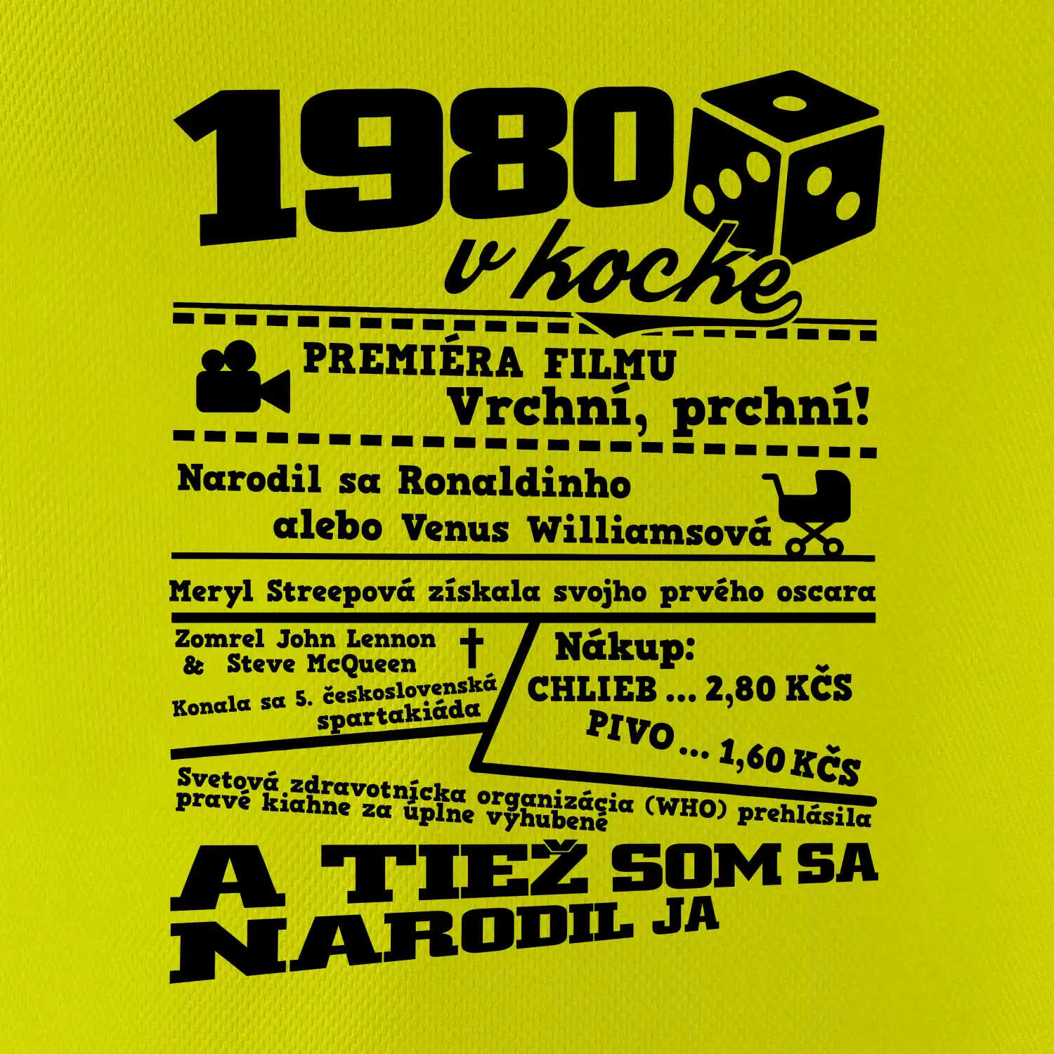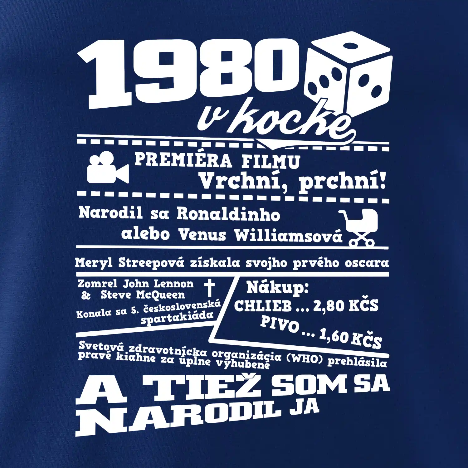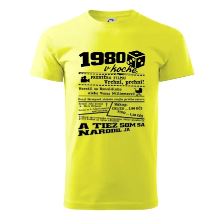 Narodeninové tričko pre ročník 1980. Zháňaš originálny darček? Tričko pre ročník 1980 v kocke je ten najlepší darček, ktorým určite potešíš. Koľko čo stálo? Kto bol prezident? Kto sa narodil? Všetko toto a ešte oveľa viac nájdeš na našom narodeninovom triku!