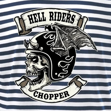 Tričko pre motorkára, na ktorom je pekelný jazdec - lebka s helmou, si musí zaobstarať každý milovník motoriek. Chopper s tričkom, na ktorom je motorkárska lebka a helma je skvelá kembinácia na vychádzku.