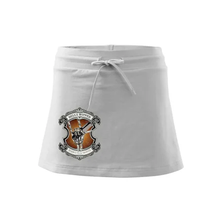 Dámska kraťasová sukňa MALFINI Two in One 604 je perfektnou kombináciou sukne a šortiek, ideálna na šport, voľný čas alebo ležérne nosenie. Vďaka prídavku elastanu si sukňa zachováva tvar a ponúka pohodlie pri pohybe. Krátky strih do tvaru „A“ a široký elastický pás so sťahovacou šnúrkou zabezpečujú voľnosť a prispôsobenie.