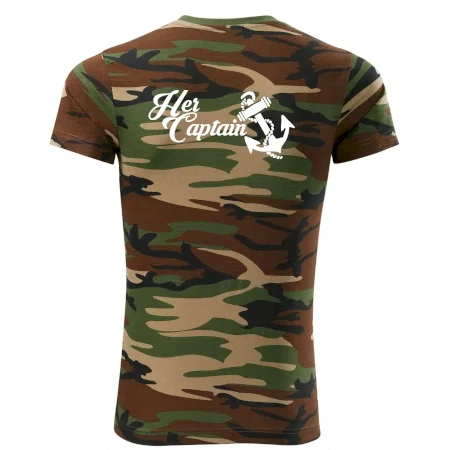 Tričko strednej gramáže vo farbách camouflage. Strih s bočnými švami. Lem priekrčníku z rebrového úpletu s prídavkom 5% elastanu. Vnútorná časť zadného priekrčníka začistená páskou vo farbe camouflage.