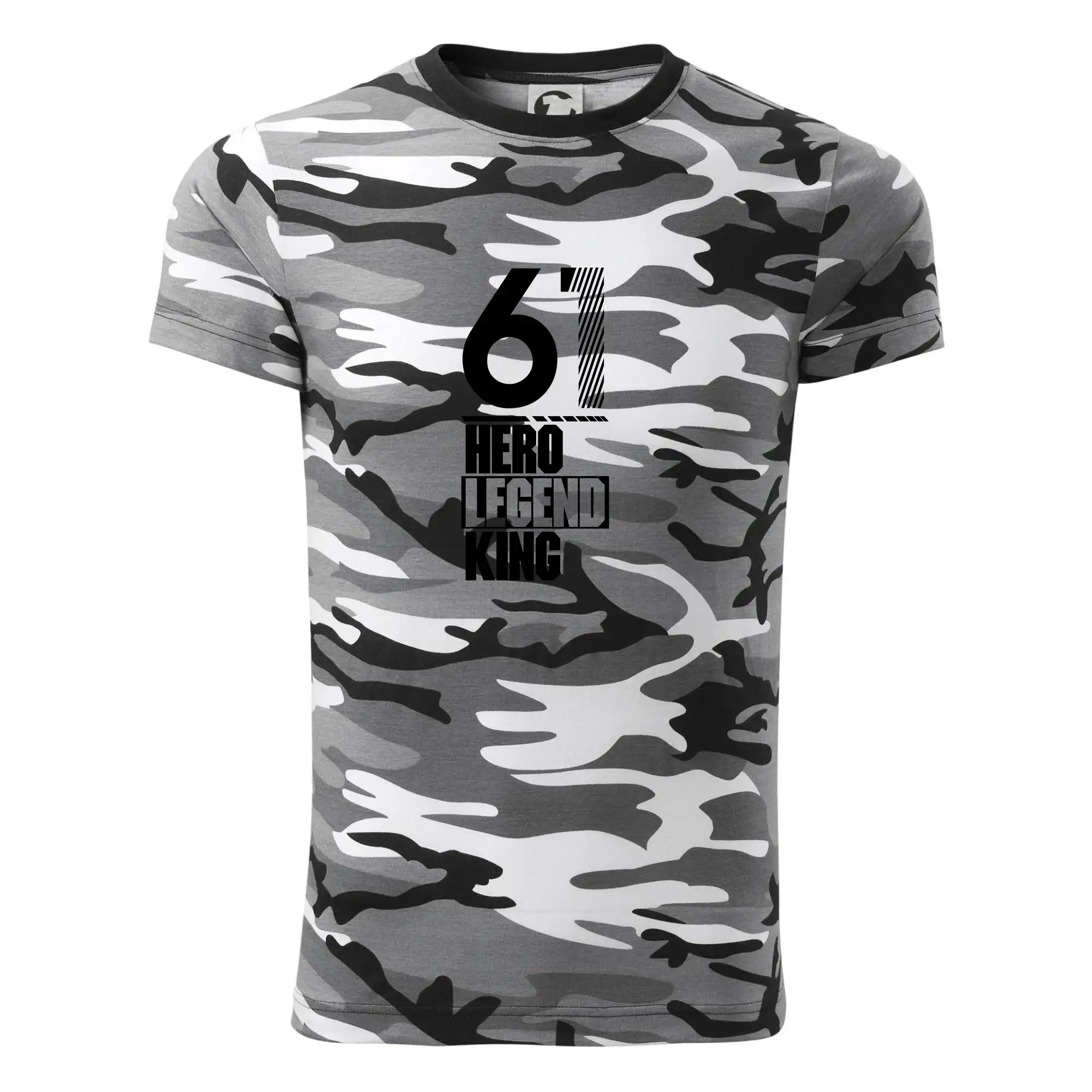 Tričko strednej gramáže vo farbách camouflage. Strih s bočnými švami. Lem priekrčníku z rebrového úpletu s prídavkom 5% elastanu. Vnútorná časť zadného priekrčníka začistená páskou vo farbe camouflage.