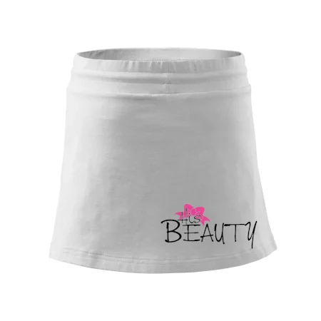 Dámska kraťasová sukňa MALFINI Two in One 604 je perfektnou kombináciou sukne a šortiek, ideálna na šport, voľný čas alebo ležérne nosenie. Vďaka prídavku elastanu si sukňa zachováva tvar a ponúka pohodlie pri pohybe. Krátky strih do tvaru „A“ a široký elastický pás so sťahovacou šnúrkou zabezpečujú voľnosť a prispôsobenie.