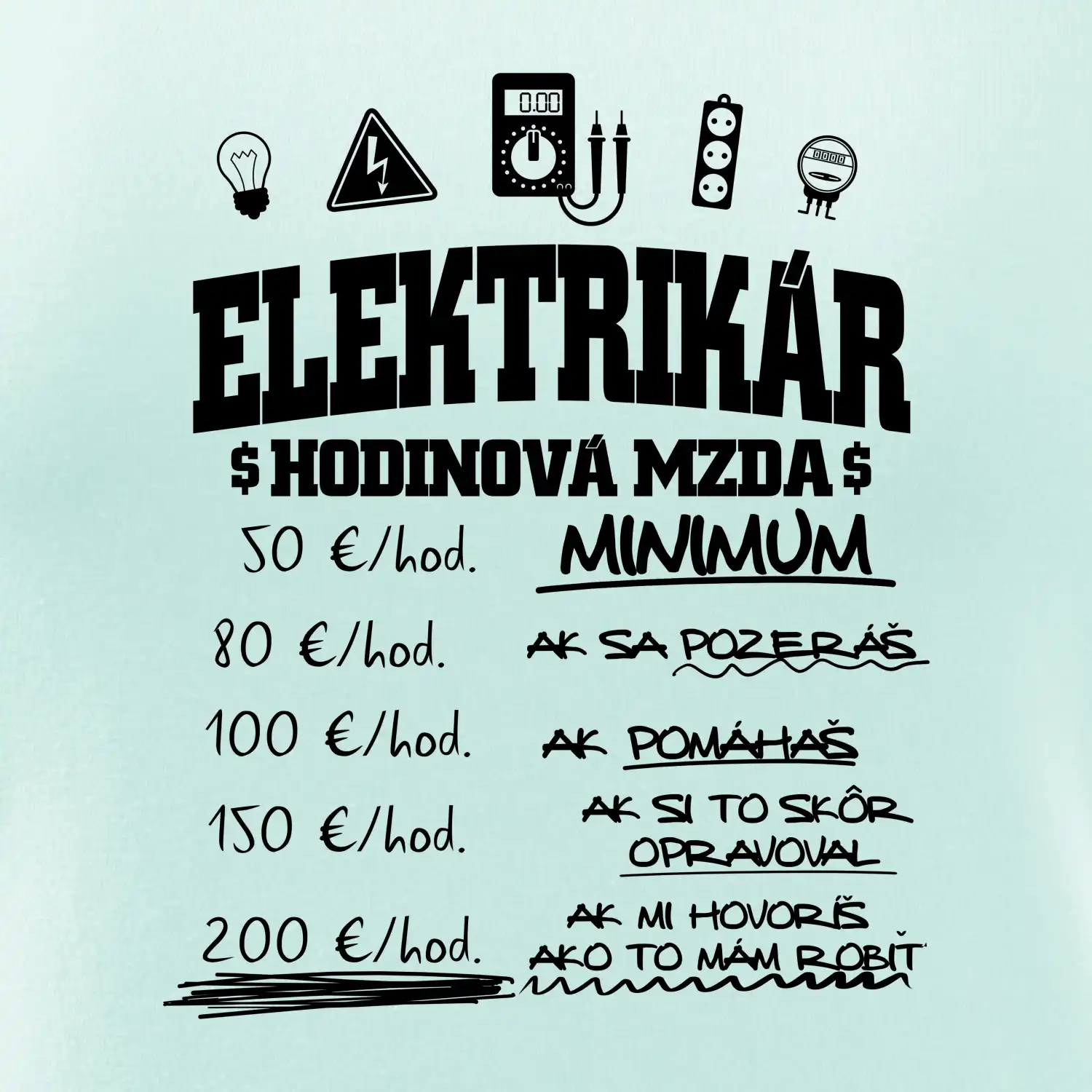 Vhodný darček pre každého elektrikára, ktorý miluje svoje povolanie. Originálne grafické motívy pre elektrikárov.