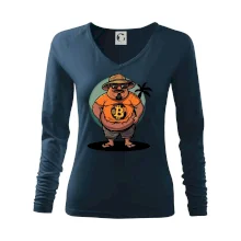 Ramená spevnené všitým prúžkom. Tričko siaha do hĺbky bokov. Silikónová úprava zabezpečuje mäkký a splývavý omak.